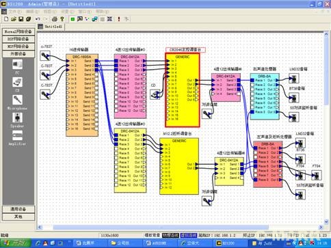 ⑴使用了c-mark网络音频设备DRC0412A 4进12出网络音频传输器1台,DRB-8A 网络音频处理器1台,DRE-16网络音频接口1台,CB2046调音台1台,C-783T无线话筒3只,MK75T鹅颈式话筒1只,T系列数字功放等。