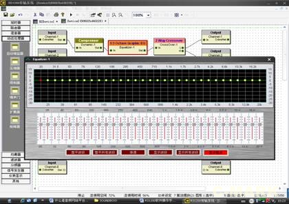我们可以看到,它和普通模拟设备的均衡器几乎完全一样,频率推杆也都非常形象逼真。网络音频矩阵里,所有的设备都是以这种形式出现的,这样的界面生动而形象的把每个设备展现在操作者面前,并且非常便于操作。