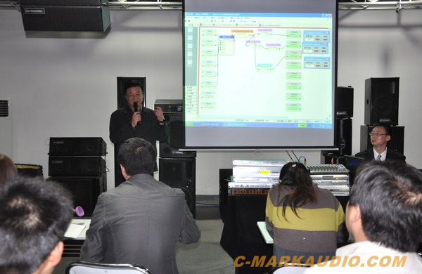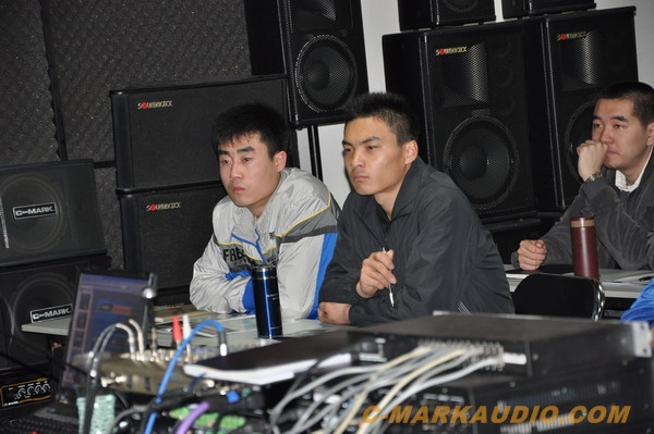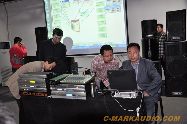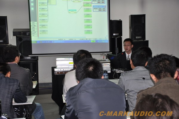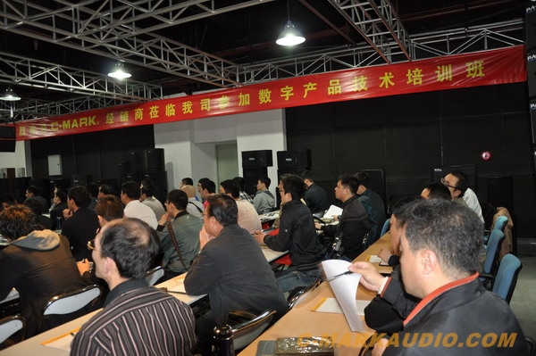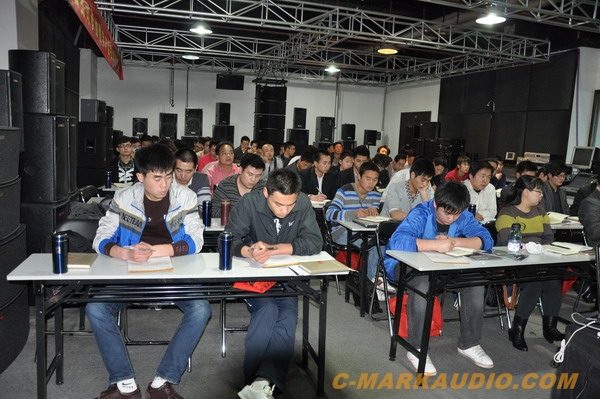 本期培训为期七天,学员们将在未来的几天培训中系统地学习网络数字音频的传输与处理,全桥数字功放机、半桥数字功放机、多通道数字功放机及DSP数字功放机的原理与应用,同轴音箱和数字有源音箱的工程方案设计技巧,C-MARK音箱在EASE数据库中的实际应用等课程。